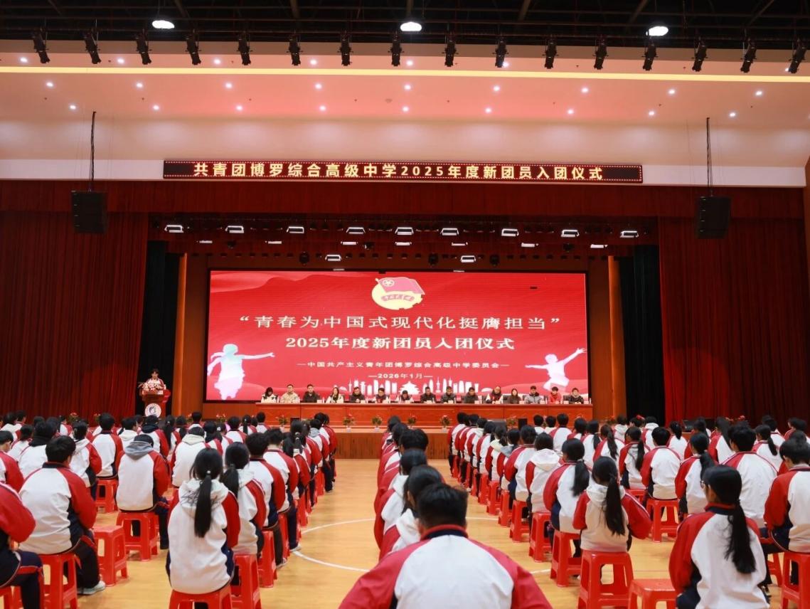 青春孕育无限希望,青年创造美好明天。为加强共青团队伍建设,激发新团员的责任感与使命感,引导广大青年坚定理想信念,矢志拼搏奋斗,1月22日,博罗综合高级中学校团委隆重举行“青春为中国式现代化挺膺担当”2025年度新团员入团仪式。150名品学兼优的青年学子在庄严的仪式中,光荣加入了中国共产主义青年团。