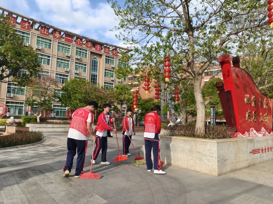 在带队老师的统一安排下,志愿者们热情高涨、分工协作,手持扫帚、抹布、垃圾袋等工具,对校园主干道、绿化带、教学楼角落、宣传栏、操场等区域开展全面细致的清洁整治。大家不怕脏、不怕累,弯腰捡拾垃圾、擦拭灰尘、清理杂物,用双手守护校园洁净,用行动诠释雷锋精神。