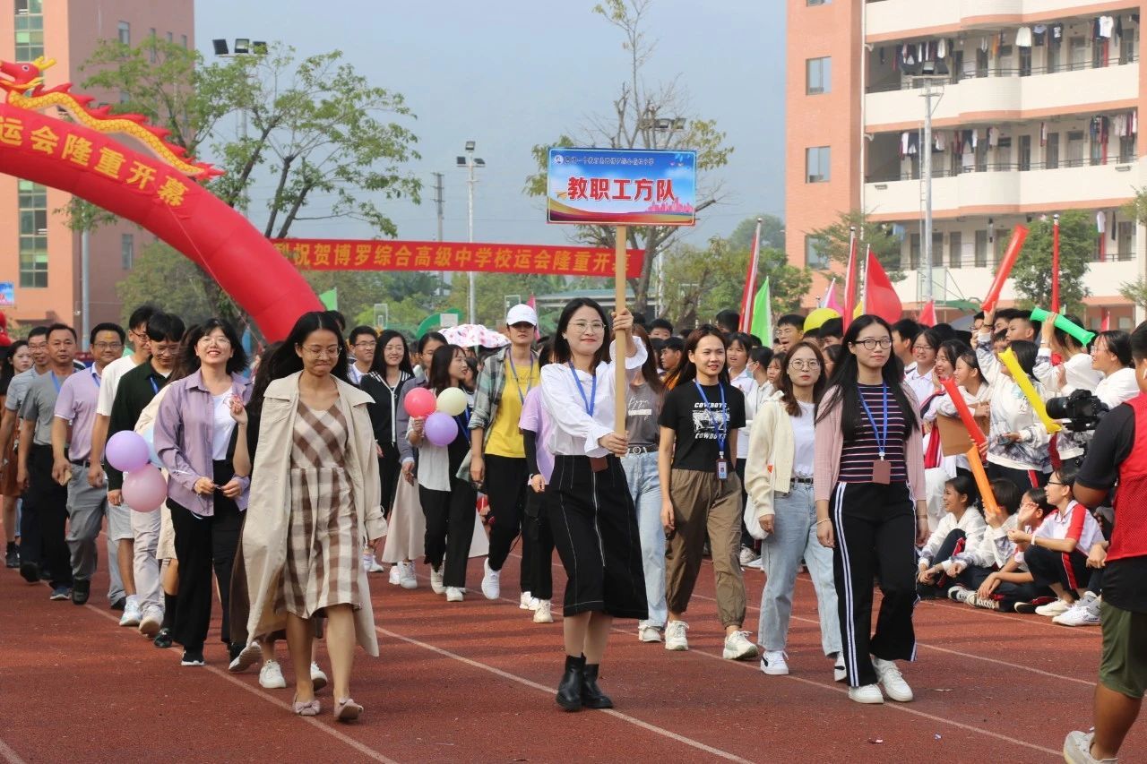 各班级队伍踏着整齐有力的步伐向主席台走来,气宇轩昂、精神抖擞,彰显着博罗综高自强不息、超越不止的精神风貌。