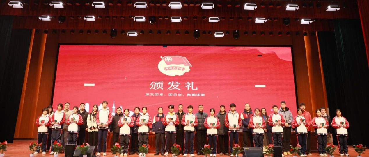 学校党支部负责人、党员代表及团组织负责人分批为新团员们颁发团章和团员证并佩戴团徽。小小的团徽不仅是一份荣誉,更是一份沉甸甸的责任。它象征着新一代青年在党的领导下,继承光荣传统,开拓进取的决心。