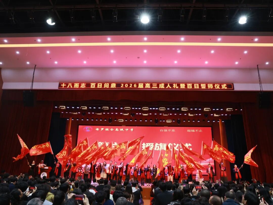 父母牵手,师长相伴,学子们稳步跨越“成人门”。走向的,是独立的人生;迎接的,是辽阔的世界。这是一场仪式,更是一次唤醒:唤醒担当,唤醒勇气,唤醒那个为梦想拼尽全力的自己!一百天,是冲刺更是绽放;十八岁,是终点更是起点!愿你们: 心中有火,眼里有光;笔下有山河,脚下有力量。以成年之志,赴百日之约,在2026的盛夏,书写属于自己的辉煌篇章!